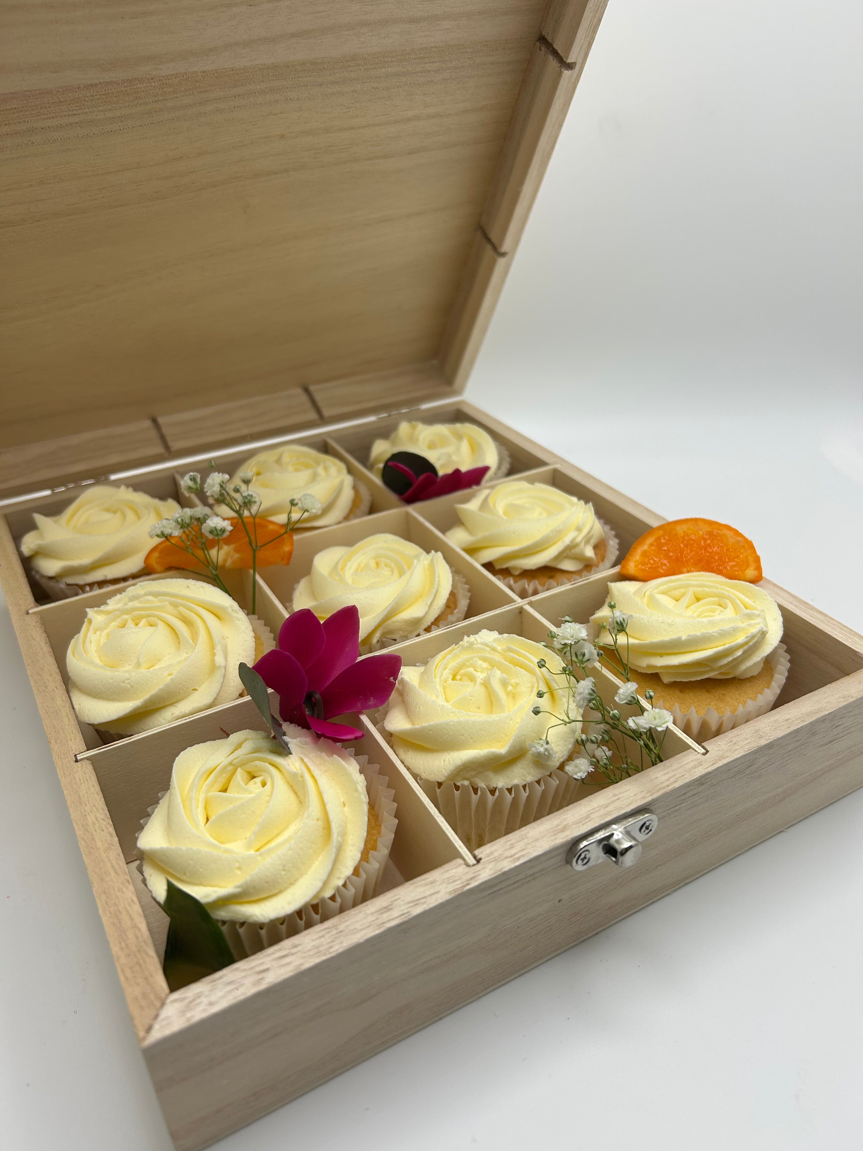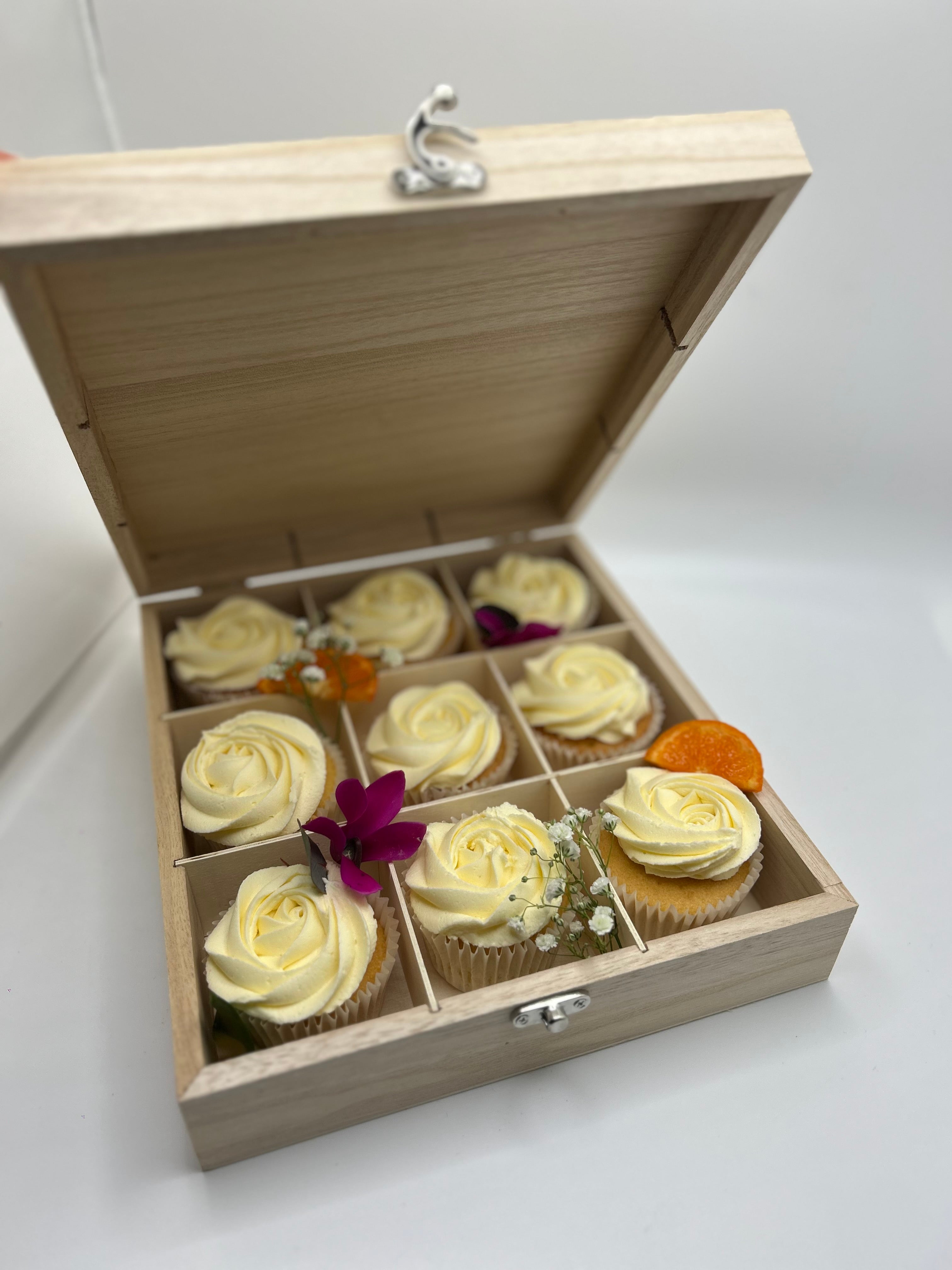 Treat someone with a box of nine signatory vanilla cupcakes!
